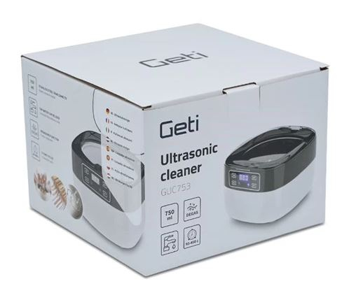 Ultrazvuková čistička Geti GUC 753 vyčistí vše od povrchových nečistot, a to jen pomocí vody a vibrací, které vytváří ultrazvuk. Ultrazvukové vlny o frekvenci 43 kHz generují vibrace, které vytvářejí efekt kavitace, tedy vznik milionů mikroskopických bublinek. Ty pronikají i do nejjemnějších záhybů a dutin čištěného předmětu. Bublinky následně spolu s vibracemi strhávají nečistoty z celého povrchu předmětu. Čističku lze použít pro celou řadu předmětů, které mohou být ponořeny do vody - brýle, prstýnky, řetízky, hodinky a podobně. Stačí jen předměty vložit do vaničky nebo držáku, nalít vodu a přístroj již vše zařídí za vás. Čištění ultrazvukem probíhá ve velmi tichém režimu s nízkou spotřebou elektrické energie.