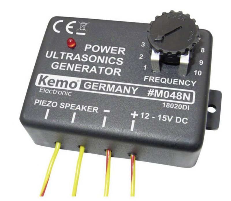 Výkonný ultrazvukový generátor pro vypuzení potkanů, myší, divokých králíků, kun a ptáků. Vydává hlasitý ultrazvukový tón se stále měnící se frekvencí. Lidé mohou slyšet obecně pouze frekvence do 18 KHz. Svítící dioda LED zobrazuje činnost na modulu.