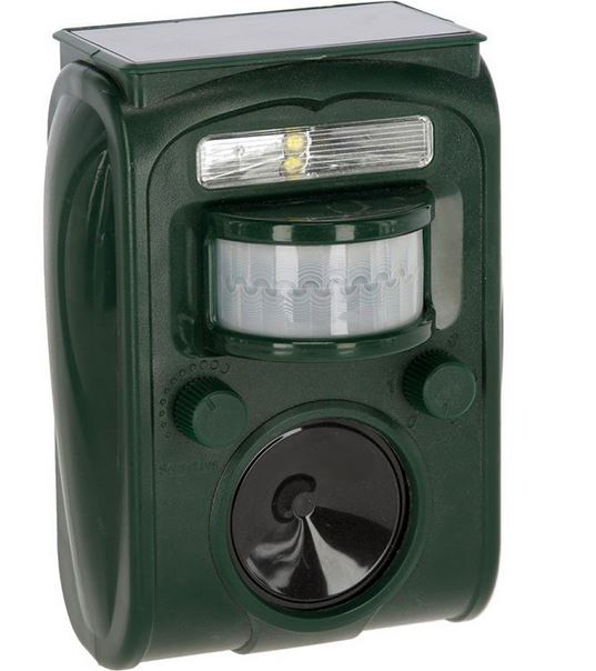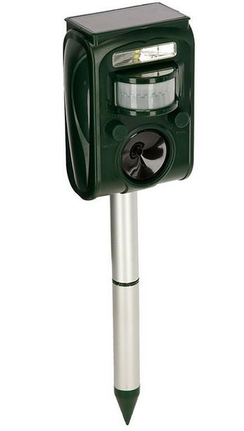 Tento odpuzovač je napájený přes solární panel a tak nemusíte neustále měnit baterie, nebo být limitováni sítí. Můžete jej umístit kamkoliv a odehnat tak zvířata ze zahrady nebo ze sadu. Osvědčený ultrazvukový odpuzovač zvířat účinně odežene nežádoucí zvířecí návštěvníky pryč z vašeho pozemku, díky inteligentní kombinaci ultrazvukové technologie a blikajícího světla. Otočným ovladačem lze nastavit celkem 5 různých frekvencí a kombinací plašení. Odpuzovač má integrovaný PIR detektor pohybu, který reaguje pouze na tělesné teplo, takže nedochází k nechtěné aktivaci listím, větvemi a podobně. Odpuzovač zvířat má účinný dosah až 70 m2, s dosahem detektoru pohybu 8 m rozsahem 110°.