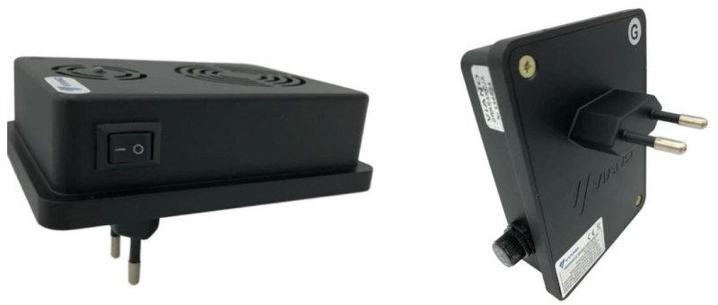 Zařízení je napájeno prostřednictvím zapojení do elektrické sítě100-230V AC 50/60Hz. Spotřeba energie při vydávání ultrazvukového tónu je 45mAa 10mA díky vydávání světelných záblesků z LED diody. Pomocí spínače můžete regulovat aktivitu LED diod.