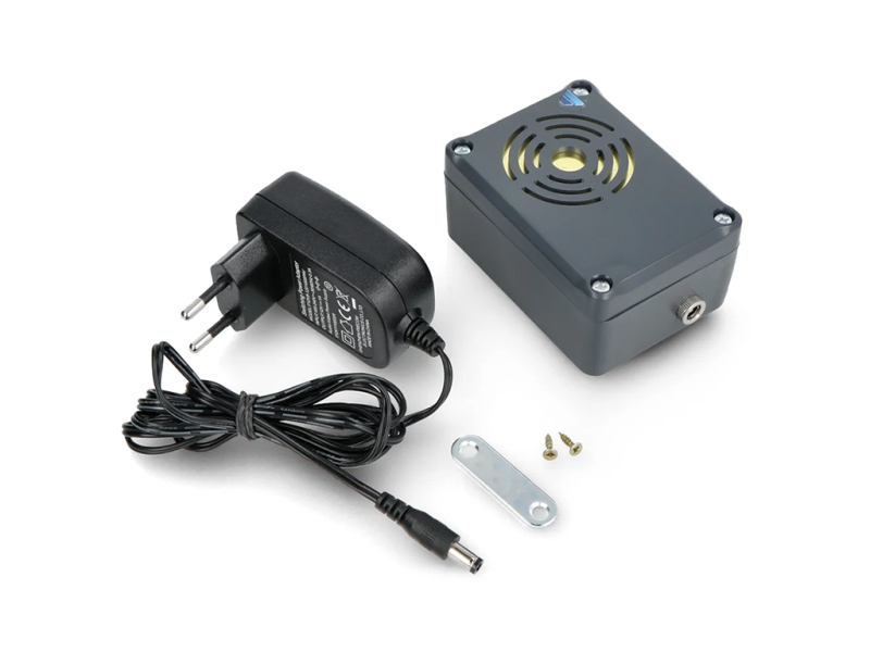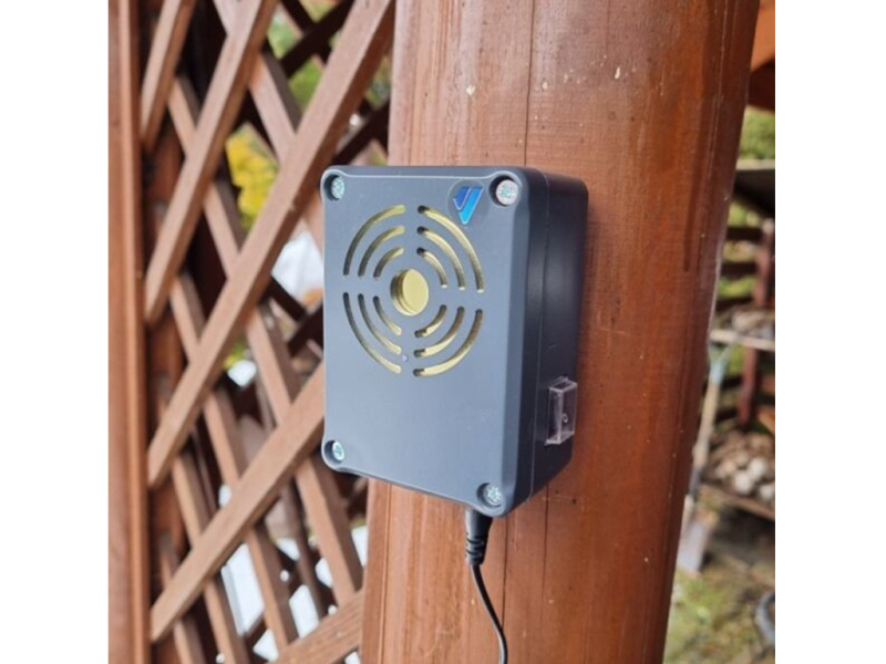 Ultrazvukový odpuzovač kun a hlodavců, 2000 m2, rozsah 120°, 1 piezoelektrický reproduktor, napájení přes 12V adaptér.