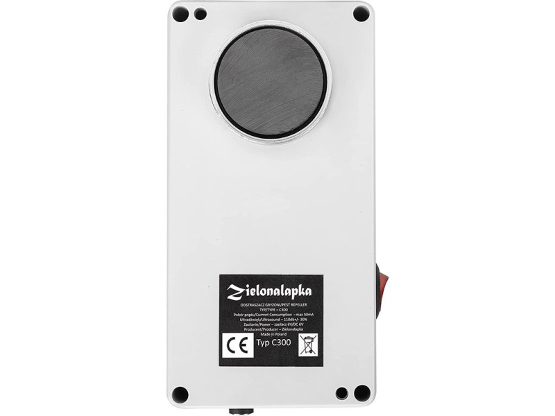 Zařízení je napájeno přes 6V adaptér, který je součástí balení. Adaptér jednoduše zapojíte do sítě a poté provoz odpuzovačeovládáte podle Vašich potřeb pomocípřepínače umístěného na boční straně.
