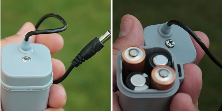 Zařízení je napájeno na 4xAA baterie (nejsou součástí balení). Zařízení je vybaveno praktickým přepínačem umístěným na boční straně, který Vám umožní ovládat jeho provoz podle Vašich potřeb. Doporučujeme použití alkalických baterií, s výdrží minimálně 6 týdnů při neustálém provozu.