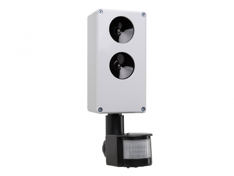 Tento model je navíc vybaven detektorem pohybu, který pracuje v okruhu 12 m, čímž senzor pronikne přibližně na plochu 220 m2. Odpuzovač se tak sám zapíná při každém pohybu zvířete a vypíná se po nastaveném čase. Senzor má 3 možnosti nastavení – dobu provozu, citlivost a jas.