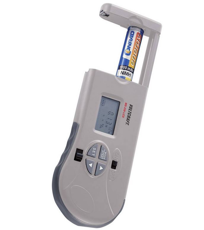 - Typ testeru baterií a akumulátorů: Micro, Mignon, Baby, Mono, 9V blok, Lady, Knoflíková baterie
