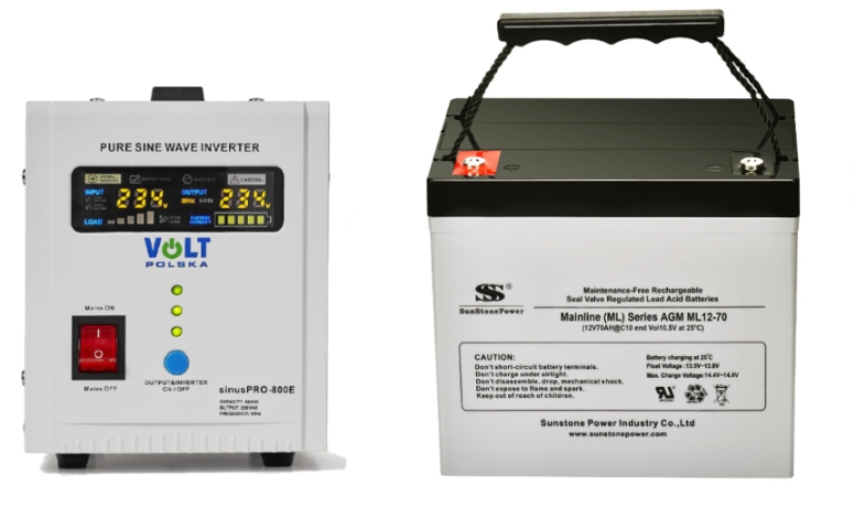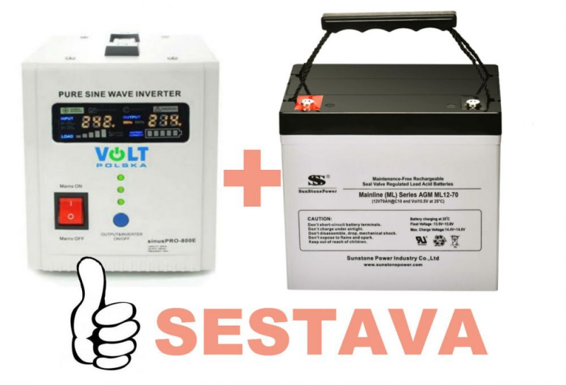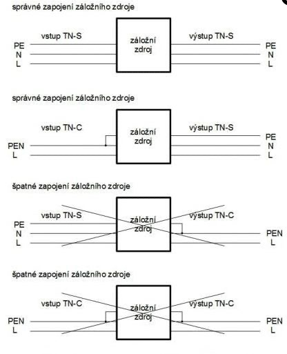 Při dodávce elektřiny je připojený spotřebič (čerpadlo, kotel, PC, osvětlení, ... ) napájen ze sítě. Záložní zdroj udržuje připojený externí akumulátor v nabitém stavu.