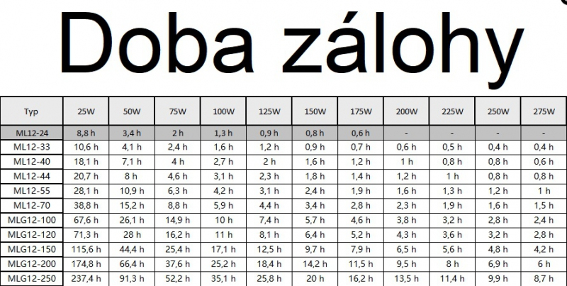- Spotřeba ze sítě - dle stavu baterie (udržovací režim < 10W)