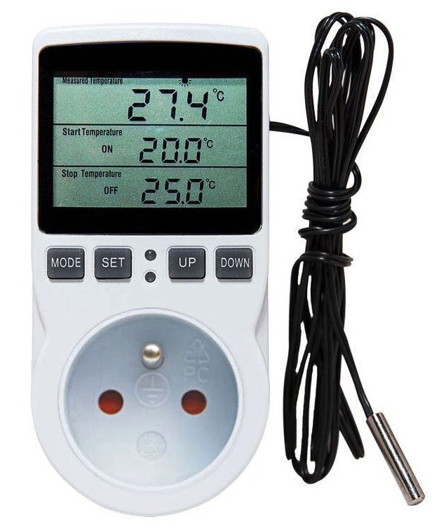 Zařízení je kombinací zásuvkového termostatu a časového spínače, přičemž funkce termostatu zůstává zachována i při použití časového spínače. Časovač je možno nastavit pro cyklický provoz nebo jednorázové zapnutí či vypnutí, popř. jednorázové zapnutí nebo vypnutí se zpožděním. Provoz je možný i bez využití časovače.
