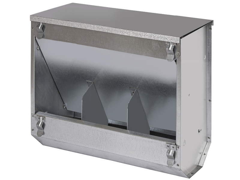 Toto skvělé krmítko je lehké, odolné díky pozinku a ze tří oddílu se pohodlně nakrmí 3 - 6 králíků. Pozinkovaná úprava povrchu zajišťuje snadné čištění. Snadná manipulace a nasypání krmiva díky odklopné stříšce. Před instalací je nutné vyříznout otvor do pletiva klece nebo ohradníku, aby se zvířata mohli dostat ke krmení v krmítku. Krmítko se pak snadněji zavěsí za 4 háčky.