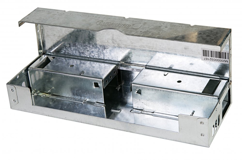 Výhodou této živolovné pasti je úzký profil (rozměry: 9x4,7x26,5 cm), což umožňuje použití na užších místech.
