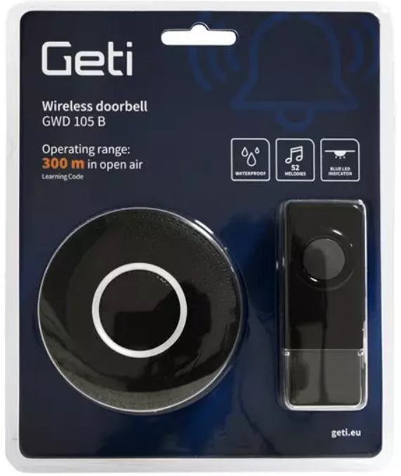 Spolehlivý zvonek GETI GWD 105 W se hodí nejen k domu či bytu, ale také do kanceláří, továren či recepčních hal. Velkou předností tohoto zvonku je jeho bezdrátové provedení s dosahem až 300 m ve volném prostoru. Instalace zvonku je velmi snadná, spárování mezi vysílačem a zvonkem probíhá automaticky. Funkce LEARNING CODE navíc umožnuje vzájemné spárování více tlačítek a zvonků. Nemusíte se obávat ani deštivého počasí, tlačítko vysílače s LED indikací je voděodolné. Zvonek má jednoduchý moderní design, 4 stupně hlasitosti, výběr z 52 vyzváněcích melodií a světelnou signalizace zvonění. Velkou výhodou zvonku je zapamatování si nastavené melodie a hlasitosti i po odpojení přístroje od elektrické sítě.