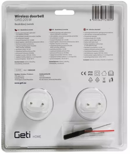 Zvonek bezdrátový Geti GWD 205W sada